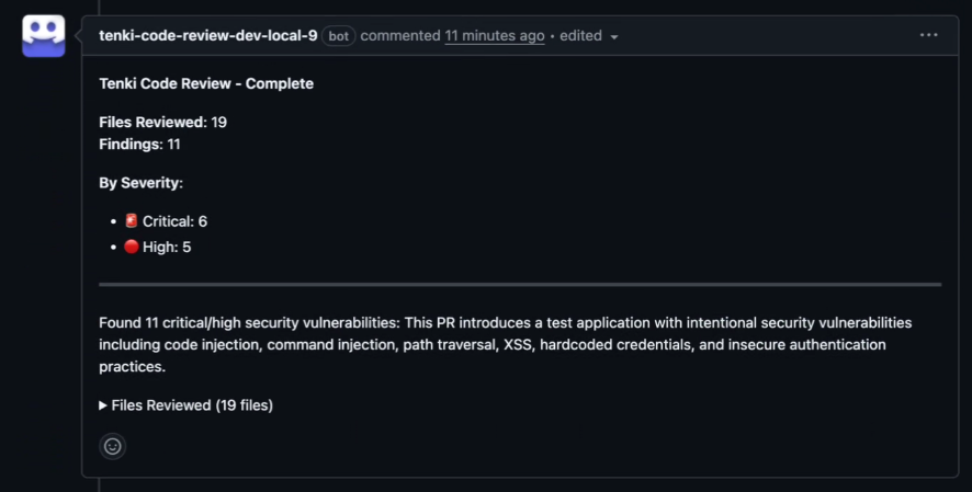 This page explains exactly how a Tenki review appears in your PR and how to interpret each component.