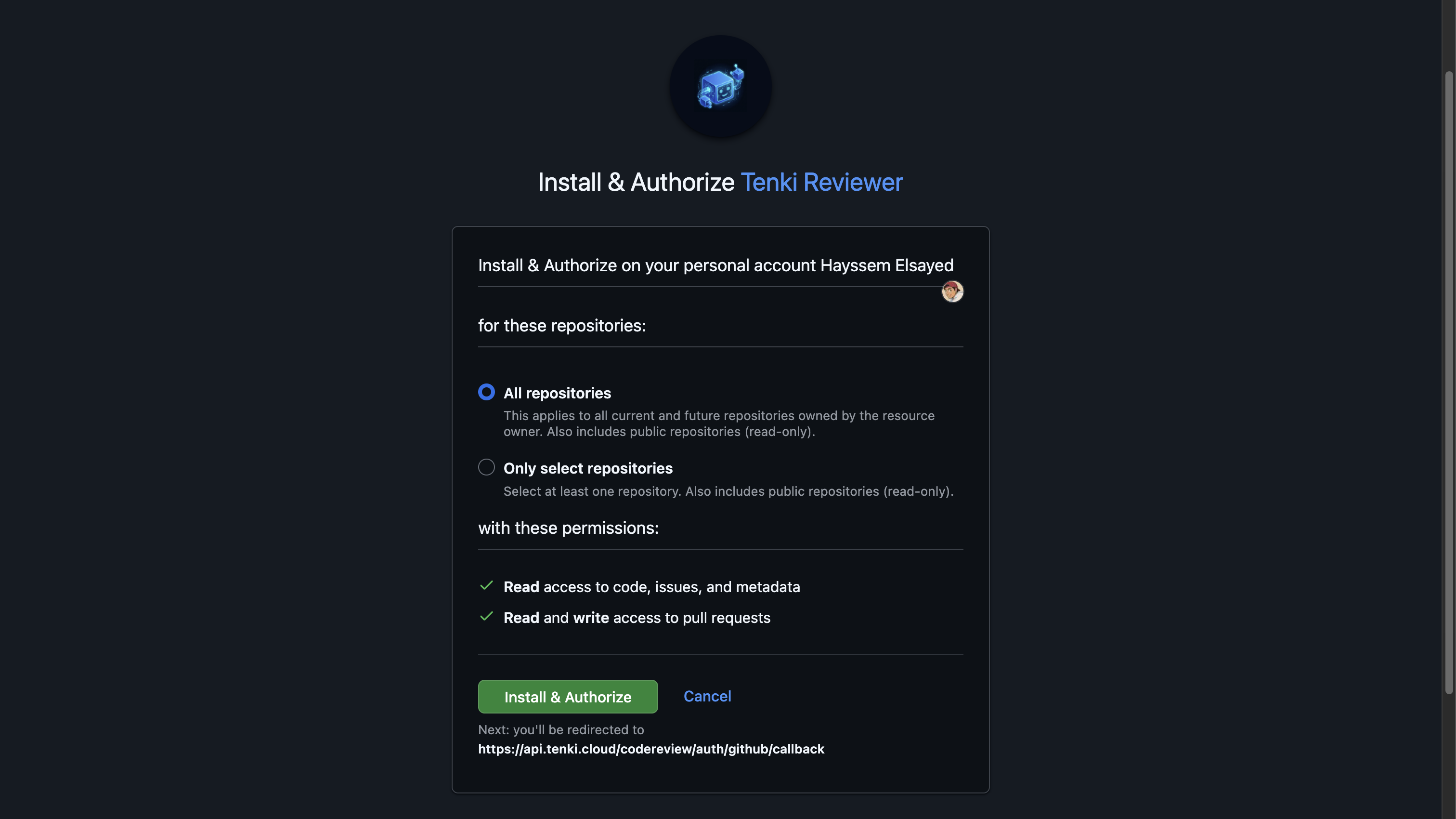 Install the Tenki Reviewer GitHub App